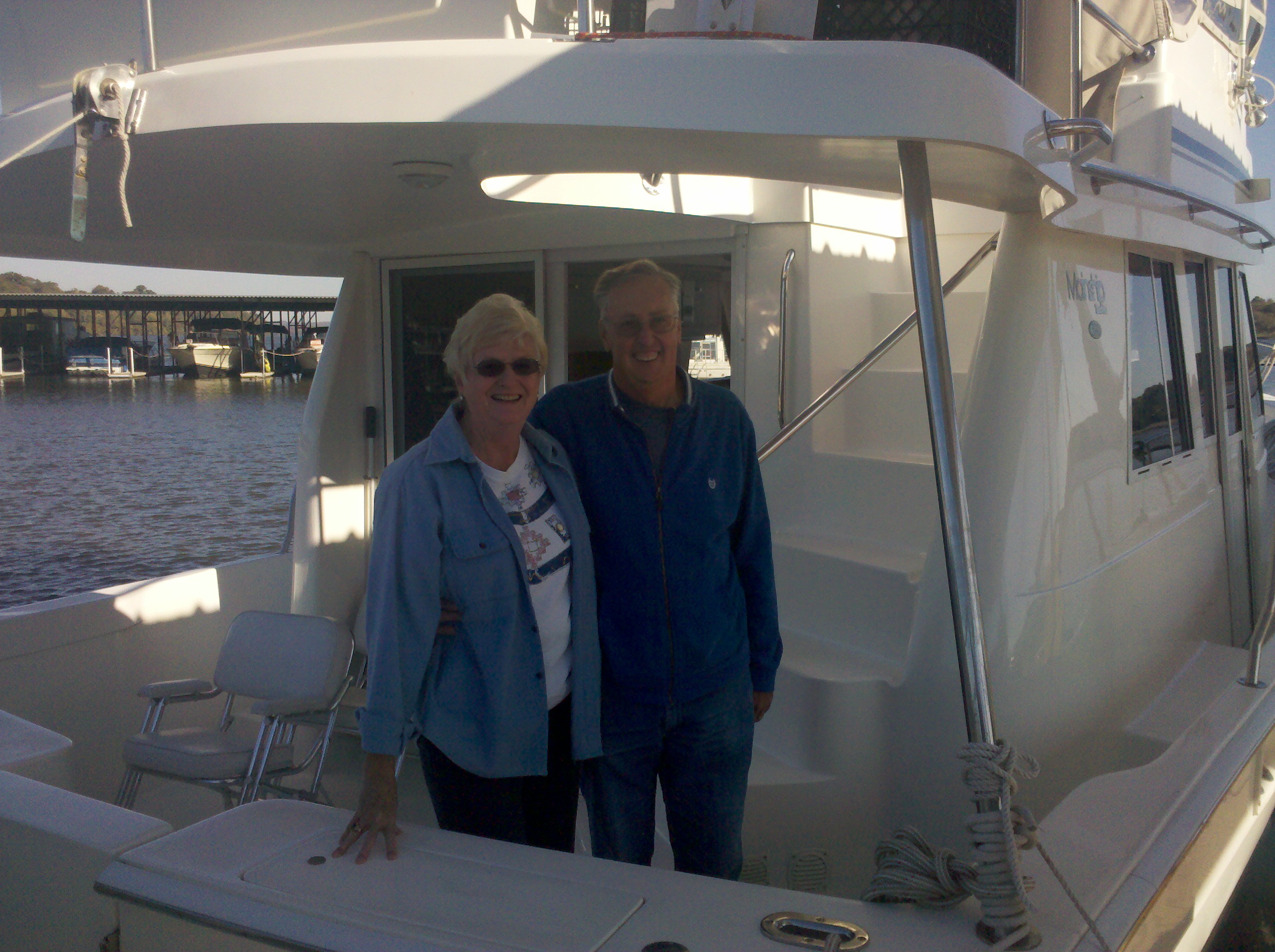 This is a bittersweet day.  Today, we bid farewell to our dear friends Charlotte and Bill Langford, who are beginning a 6,000 mile journey aboard their boat, Precious Time, a 39 foot Mainship Trawler.  Say hi, or bye rather, to Charlotte and Bill.