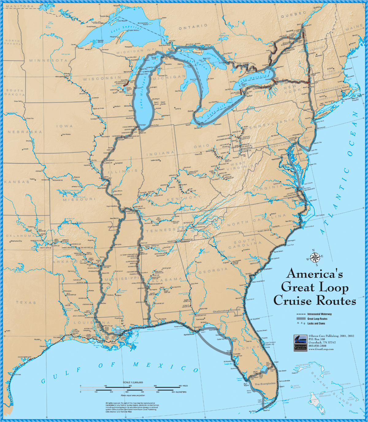 They are starting a voyage that is called “The Great Loop.”   From Nashville, they will follow the Cumberland River, go through the Barkley Canal, and proceed upstream on the Tennessee River, until reaching Joe Wheeler State Park in Alabama.  There, they will join many other boaters for the annual Great Looper’s reunion, or whatever they call it.  Then,  they will join others and float down the Tombigbee Waterway to the Gulf Of Mexico, where their travels will  become totally at the mercy of the weather.  (That is when they will certainly miss my wife Beth, the weather-witch!)   Take a look at where this journey will take them.