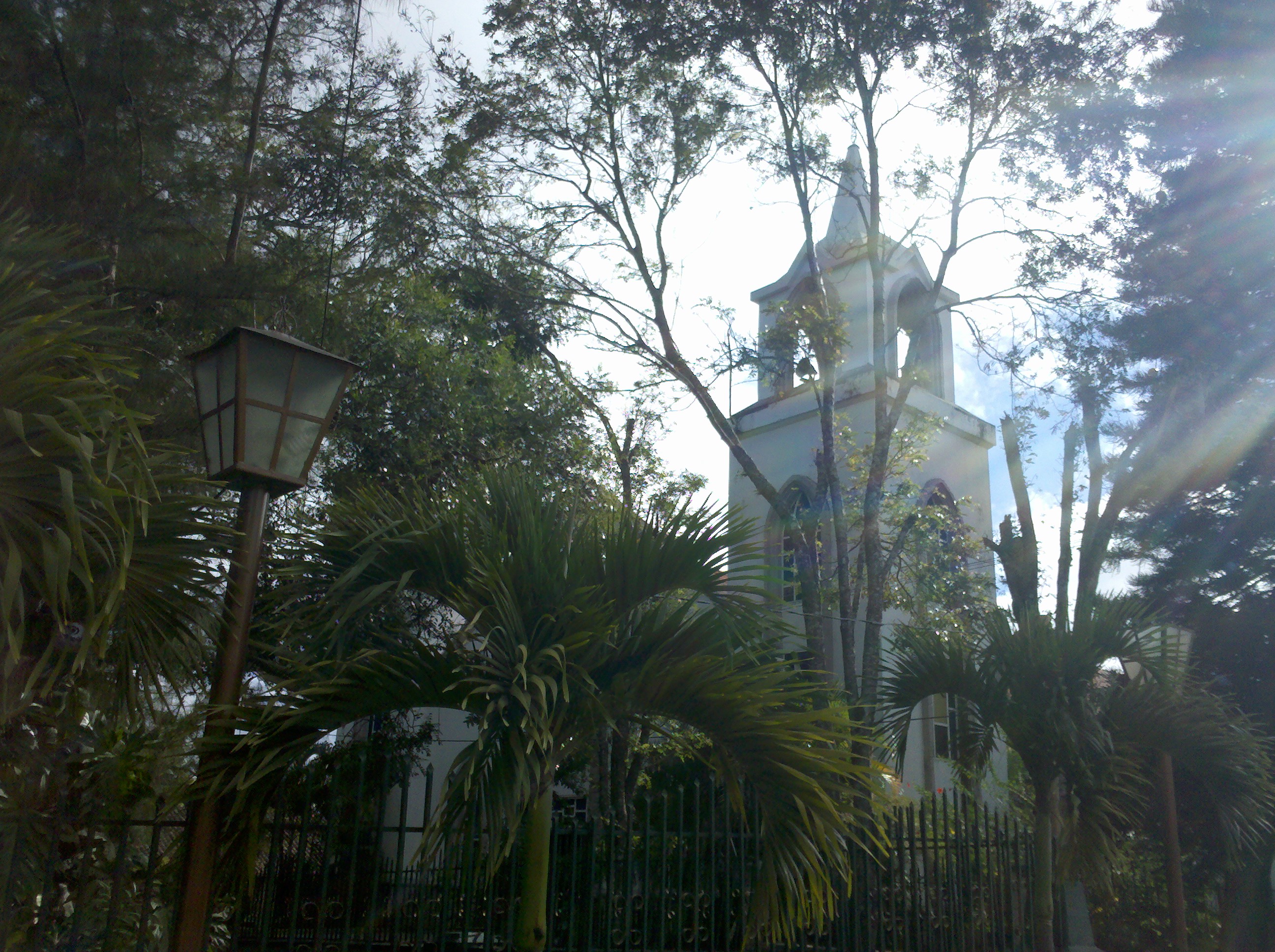 View of Catholic Church in San Marcos de Colon, as seen from the city park.