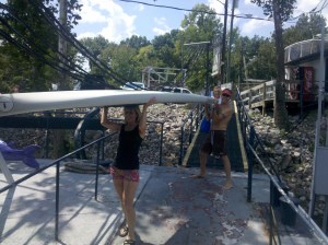 Here are avid paddle boarding enthusiasts getting ready to launch a YOLO brand (You Only Live once) paddle board into the Cumberland River at Rock Harbor.