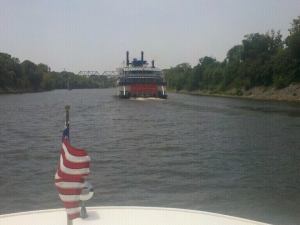We made great time down river, passed the General Jackson, and decided we would stop downtown and fix lunch and wait on it to get there and turn around, a great site to see.
