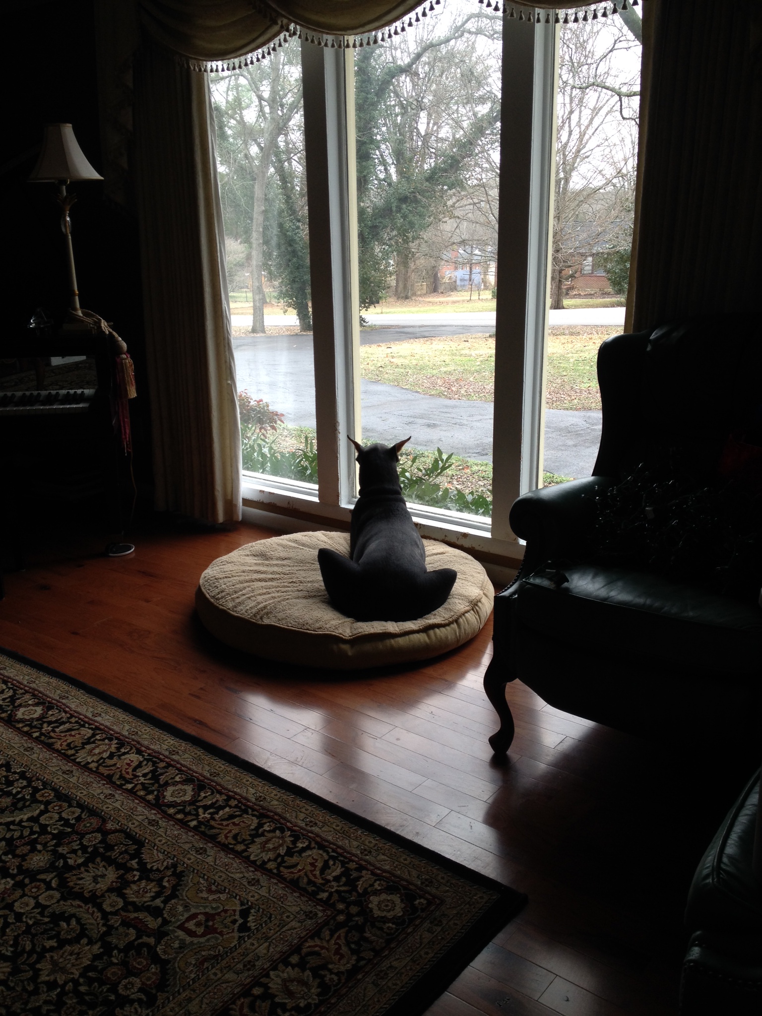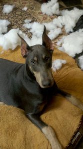Although summer was in full swing according to the calendar, the weather seemed not to get the message! Rain was constant and almost ruined the July 4th Fireworks celebration at Riverfront Park. The rain stopped just in time, but the sky was not clear at all. Ruby, our Blue Doberman, slept through it all.